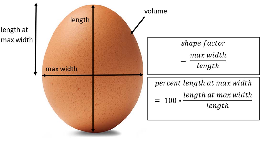 They conducted a full profile of physical quality measurements using their VolScan Profiler to determine volume of shell, total length, maximum width, and percent length at maximum width to more accurately indicate egg shape than shape index.