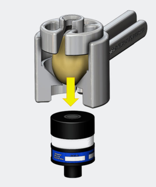 Samples are held in place by the support of a weighted shaft and the addition of user-replaceable mini glue dots. A choice of support solutions (caps) are included in the kit depending upon the sample to be supported. The chosen cap is mounted on the end of the shaft which has a 50g weight fixed to the shaft. An additional 50g and 3 x 50g weights are provided as options depending upon the support required.