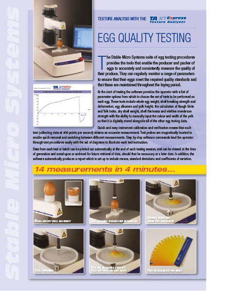 Interested in how to measure 14 egg quality parameters in 4 minutes using a Texture Analyser? Find out more